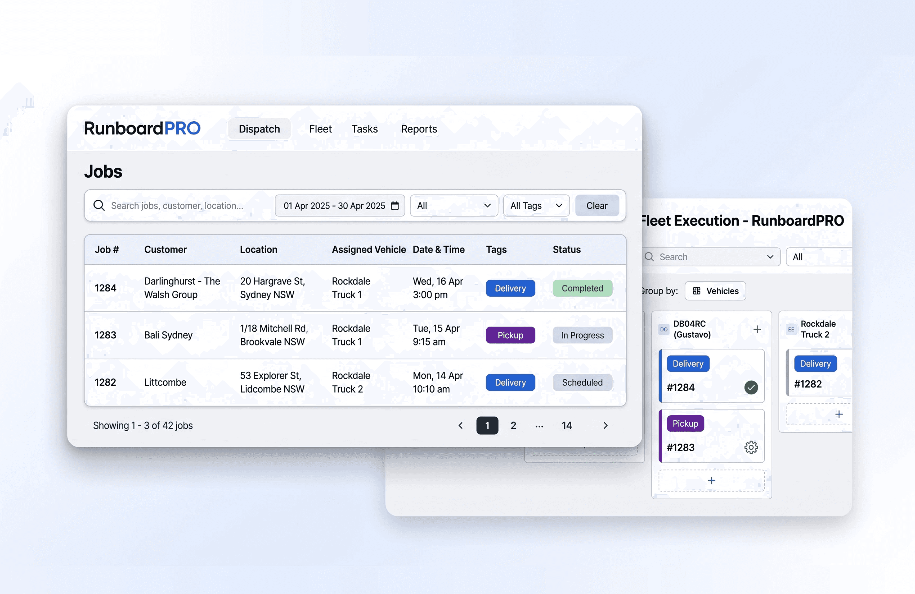 See every truck, run and job status at a glance